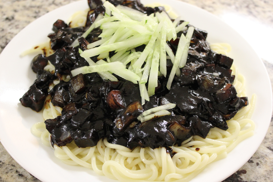 This dish might not look appetizing but it's a very popular dish in the north part of China called Zha Jiang Mian. It actually originates from a Korean dish called Jjajangmyun which is wheat noodles smothered in a black bean sauce with pieces of onions, carrots, cabbage and other vegetables. I made the Korean version which has diced fried bacon. The Chinese variation usually uses minced pork. The dish really brought me back to China.
